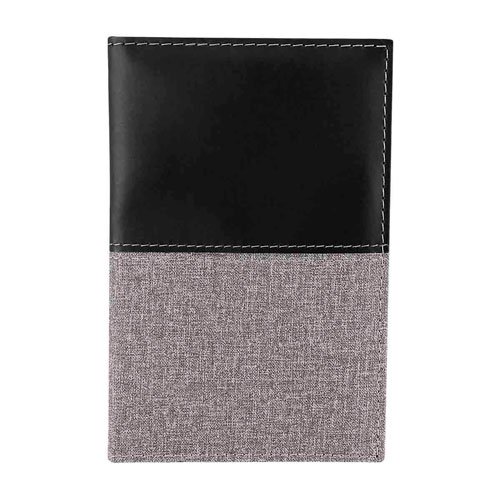 Compartimento para pasaporte y billetes. Incluye elástico para bolígrafo. MATERIAL: Curpiel TAMAÑO: 10.3 x 15.5 cm. Marca en tampografía una tinta.