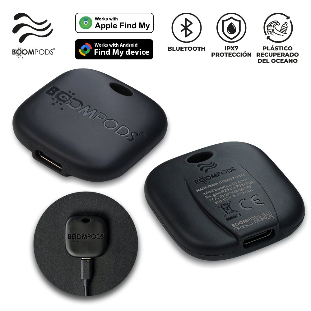Rastreador universal plástico Bluetooth, hecho de residuos reciclados recuperados del océano, para llaves, carteras, mascotas, vehículos, equipaje y otros artículos. Permite ver la ubicación de los artículos en tiempo real. Compatible con IOS y Android. Resistente al agua (no sumergible), tecnología PX7. La batería le dura hasta 5 meses con una sola carga, con puerto Tipo C para carga. Empaque caja individual. Marca: Sin Marca.