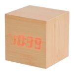 Reloj de madera con LED. Funciones: hora, alarma (se pueden programar 3 alarmas), calendario y temperatura. Baterías (3 pilas AAA) no incluidas. Incluye caja individual. CATEGORÍA: RELOJES MATERIAL: Madera TAMAÑO: 6.2 x 6.2 cm COLORES: Beige CAPACIDAD: COLOR DE TINTA: INFORMACIÓN DE IMPRESIÓN TÉCNICA: Serigrafía AREA: 5 x 5 cm INFORMACIÓN DE EMPAQUE MEDIDA: 40 x 29.5 x 32.3 cm. PESO: 9.50 kgs. CANTIDAD: 60 pza(s).