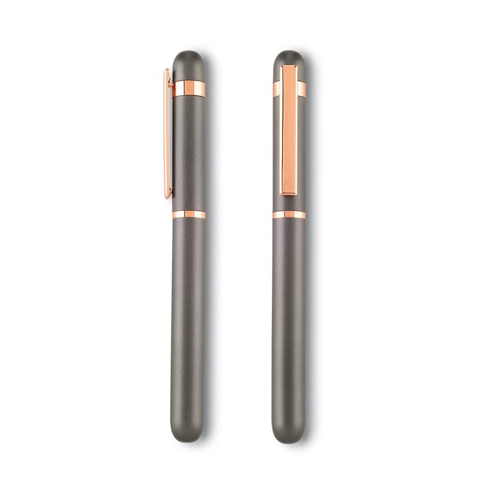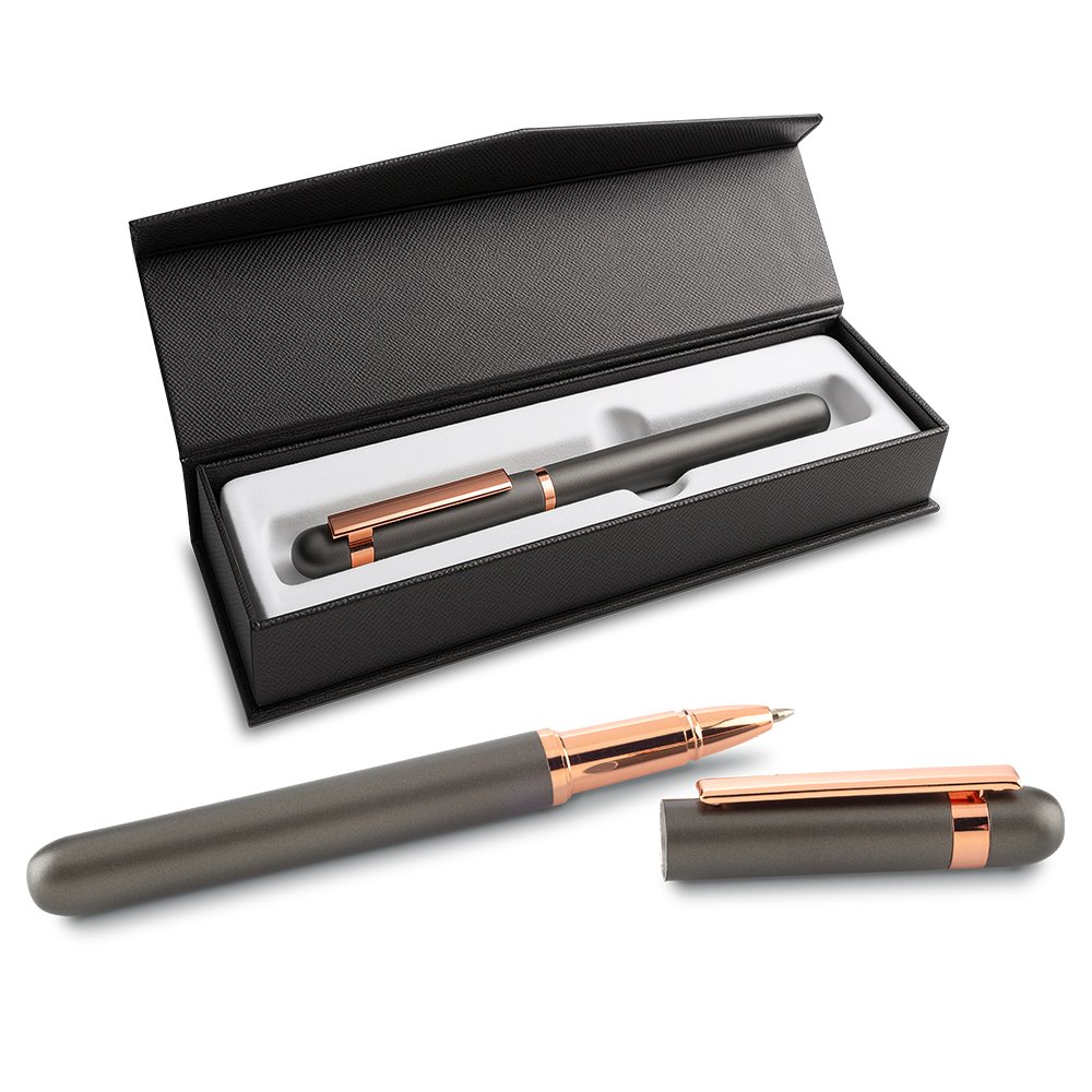 Bolígrafo metálico tipo roller. Empaque caja individual.Medidas: 13 cm.