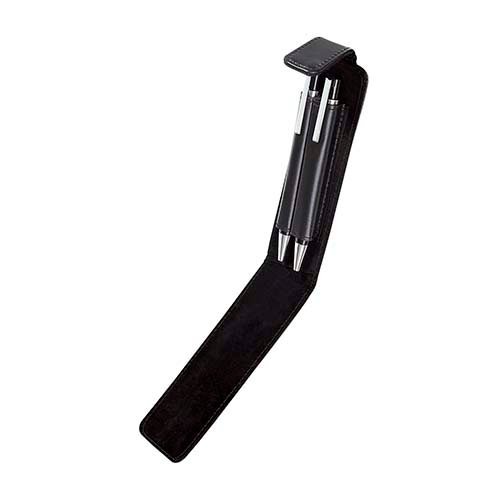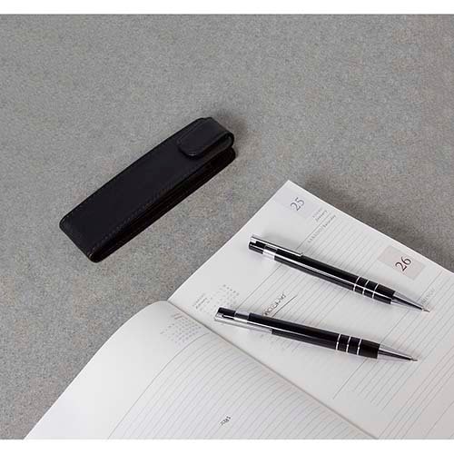 Bolígrafo y lapicera 0.5 mm. Mecanismo pulsador. Incluye estuche con imán para cerrado. CATEGORÍA: BOLIGRAFOS FUNCIONES MATERIAL: Aluminio / Curpiel TAMAÑO: 1 x 13.5 cm Bolígrafo / 4.2 x 14.5 cm Estuche COLORES: Negro CAPACIDAD: COLOR DE TINTA: Negra INFORMACIÓN DE IMPRESIÓN TÉCNICA: Láser / Serigrafía / Termograbado AREA: 0.7 x 5 cm Bolígrafo / 2.5 x 9 cm Estuche INFORMACIÓN DE EMPAQUE MEDIDA: 54 x 25.5 x 33.5 cm. PESO: 13.00 kgs. CANTIDAD: 200 pza(s).