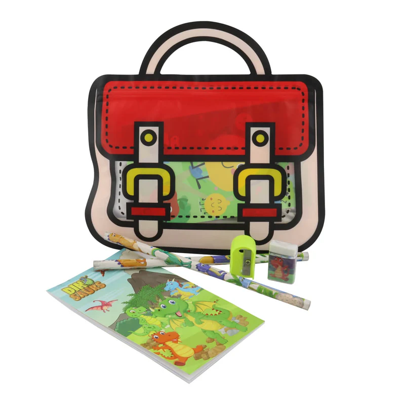 Set Cartuchera con libreta, lápices, tajalápiz y borrador. El producto viene surtido especificar que color desea comprar si hay inventario. MEDIDAS: ANCHO: 19 cm, LARGO: 19 cm