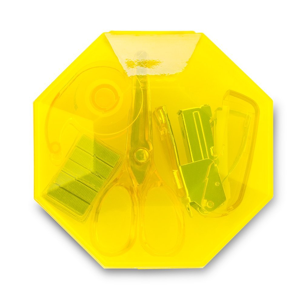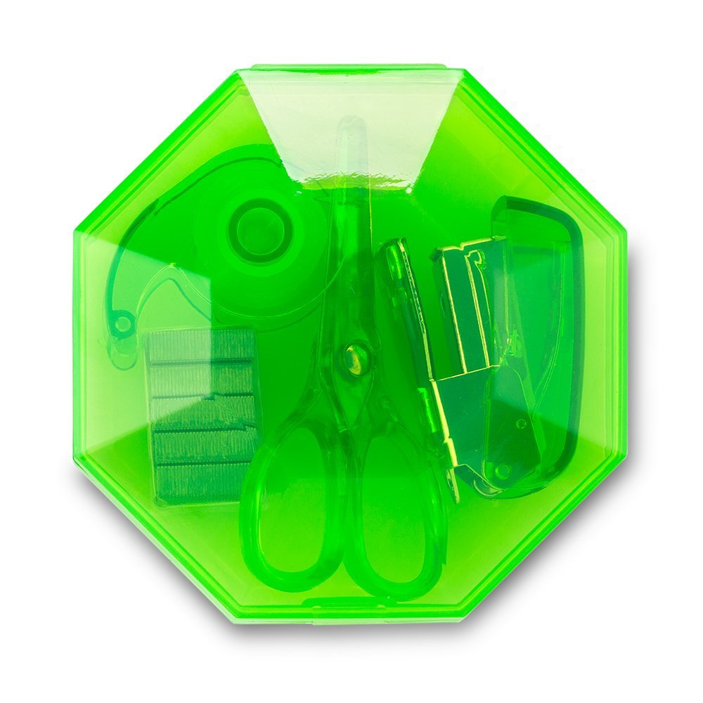 Set de escritorio plastico con dispensador de cinta tijeras cosedora y ganchos Medidas: 8 cm x 8 cm x 2 cmMarca: 3 cm / Tampografia – IMPORTANTE: Antes de realizar el pedido, verificar existencias con su asesor.