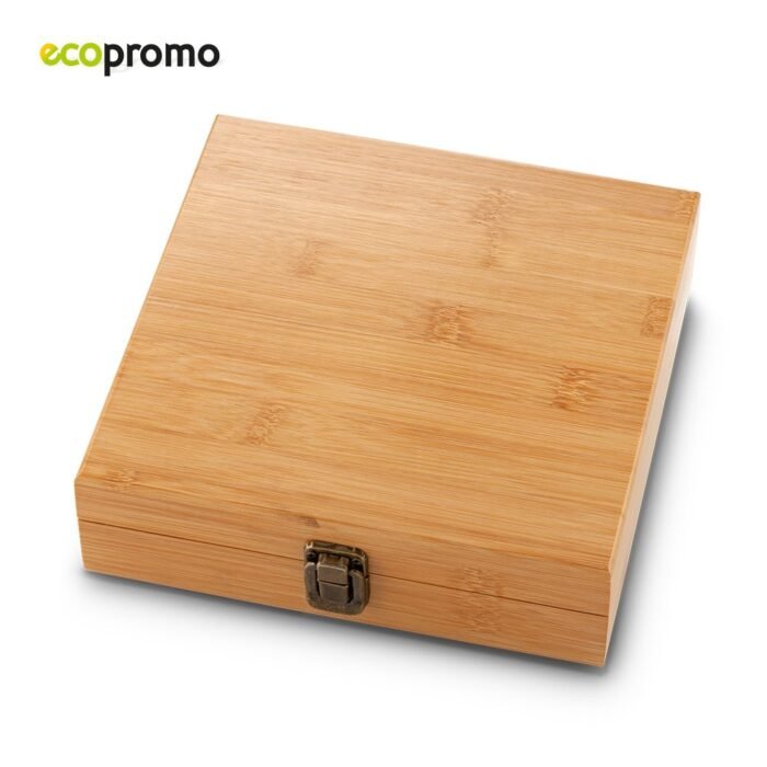 Juego de licorera en acero inoxidable de 177ml de capacidad, dos copas y mini embudo. 1 juego de cartas, 1 juego de dados. Empaque en caja de bambú. Caja individual. Medidas Estuche: 21 cm x 21 cm. Marca: / Láser