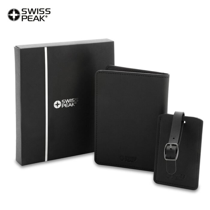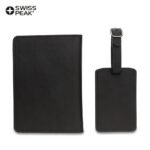 Set de portapasaporte e identificador de maletas en poliuretano reciclado. Con portatarjetas de 4 ranuras y bolsillo.Empaque caja individual. Medidas Caja: 15.5 cm x 17.6 cm. Marca: Portapasaporte: / Tampografía. Marca: Identificador / Tampografía