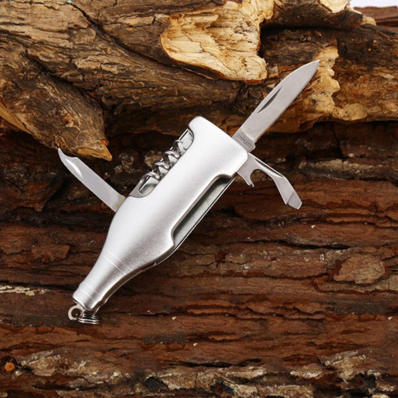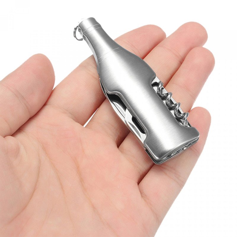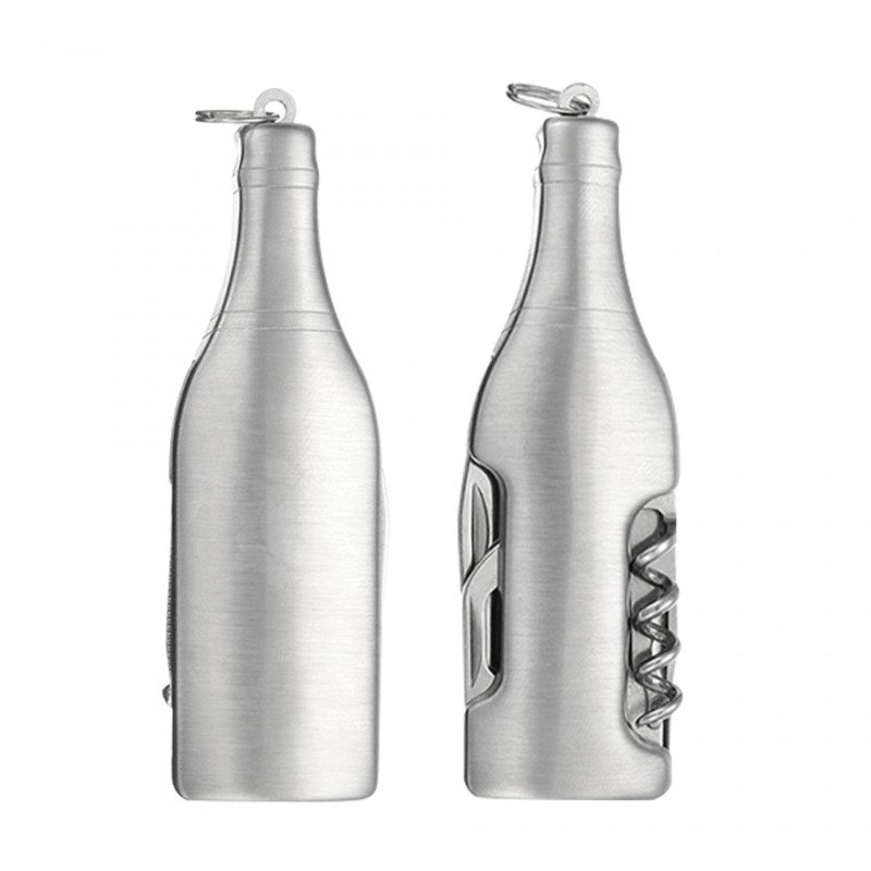 Herramienta para vinos en acero inoxidable con sacacorchos, destapador, navaja, destornillador de pala. De 7 x 2.10 cm.Impresión: Tampografía metálica.