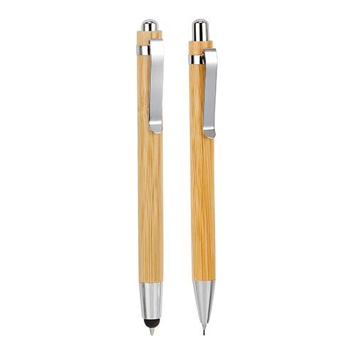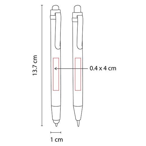 Bolígrafo con touch screen y lapicera 0.5 mm. Mecanismo pulsador. Incluye estuche. CATEGORÍA: BOLIGRAFOS FUNCIONES MATERIAL: Madera TAMAÑO: 1 x 13.7 cm COLORES: Beige CAPACIDAD: COLOR DE TINTA: Negra INFORMACIÓN DE IMPRESIÓN TÉCNICA: Láser / Serigrafía AREA: 0.4 x 4 cm INFORMACIÓN DE EMPAQUE MEDIDA: 59 x 27 x 38.5 cm. PESO: 9.50 kgs. CANTIDAD: 200 pza(s).