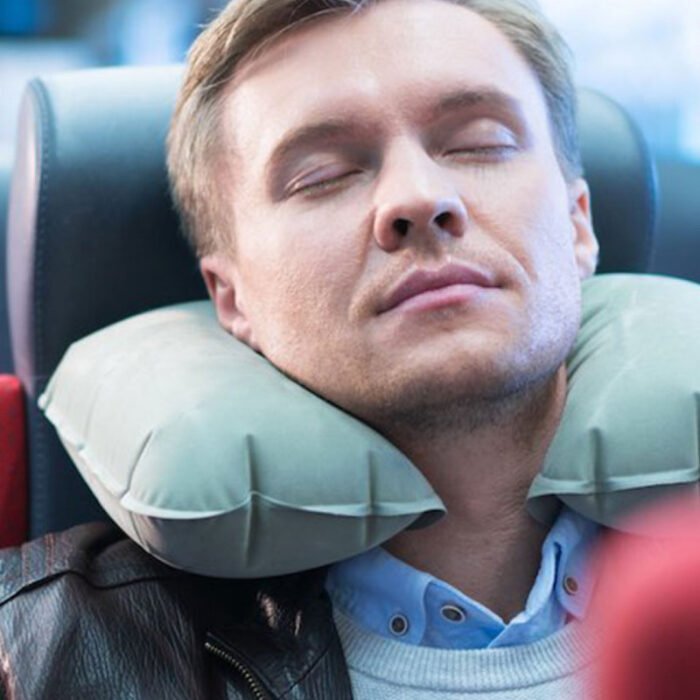 Cojín inflable gamuzado para el cuello con tapa ojos y bolsa ajustable en cambrel. De: 16,3 x 11 cm.Impresión: Screen
