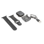 Reloj inteligente con pantalla táctil de 1,73″ TFT color. Análisis y monitoreo del número de pasos, calorías, distancia, monitor de fatiga, monitor de sueño, nivel de oxígeno, frecuencia cardíaca y presión arterial, y recordatorio de sedentarismo. Resistente al agua (nivel IP67). Incluye cronómetro, temporizador y reloj. MATERIAL: ABS + PC.
