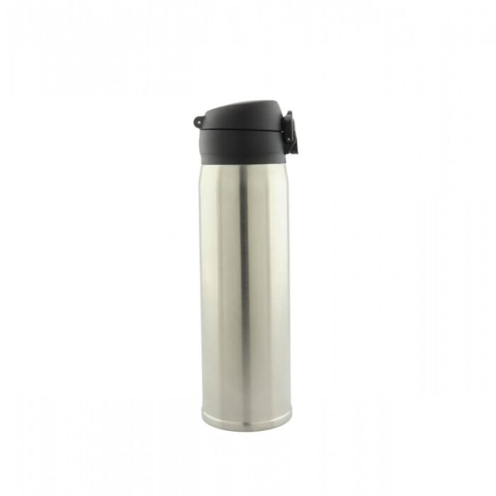 Termo Metálico con sistema de vacío para conservar el calor de sus bebidas. Tapa hermética con segunda tapa de seguridad para evitar derrames. Cuerpo plateado. Alto:24.5 cm, Diámetro: 6.6 cm,Capacidad: 15 oz ( 444 ml ), Tipo de Impresión: Grabado Láser, Impresión Tampografía Tinta Metálica