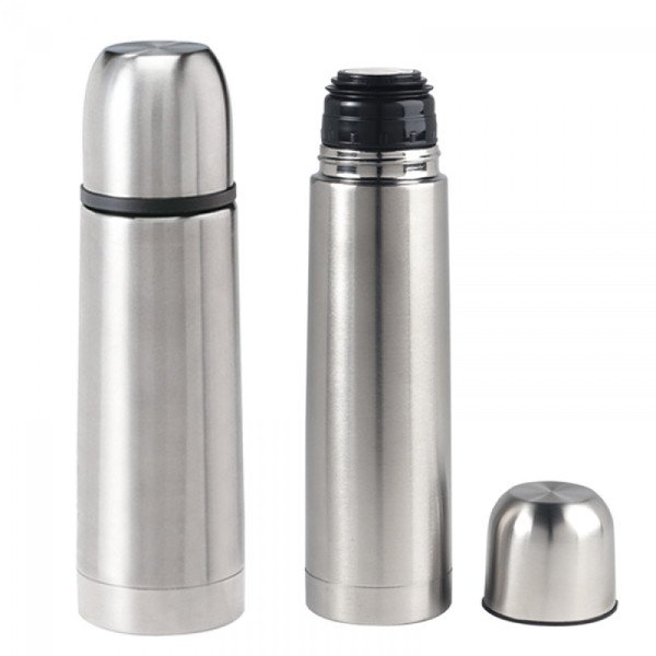 En acero inoxidable de aislamiento térmico para bebidas calientes entre 3-5 horas aprox.De 350 ml. De 19,5 x 6,8 cm de diámetro.Impresión: Tampografía metálica – Grabado laser