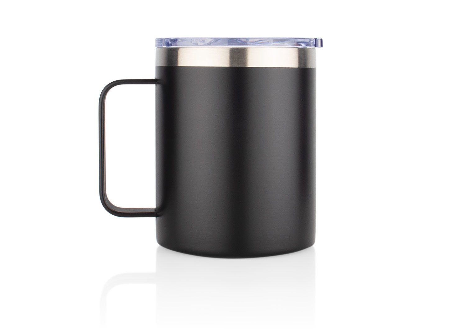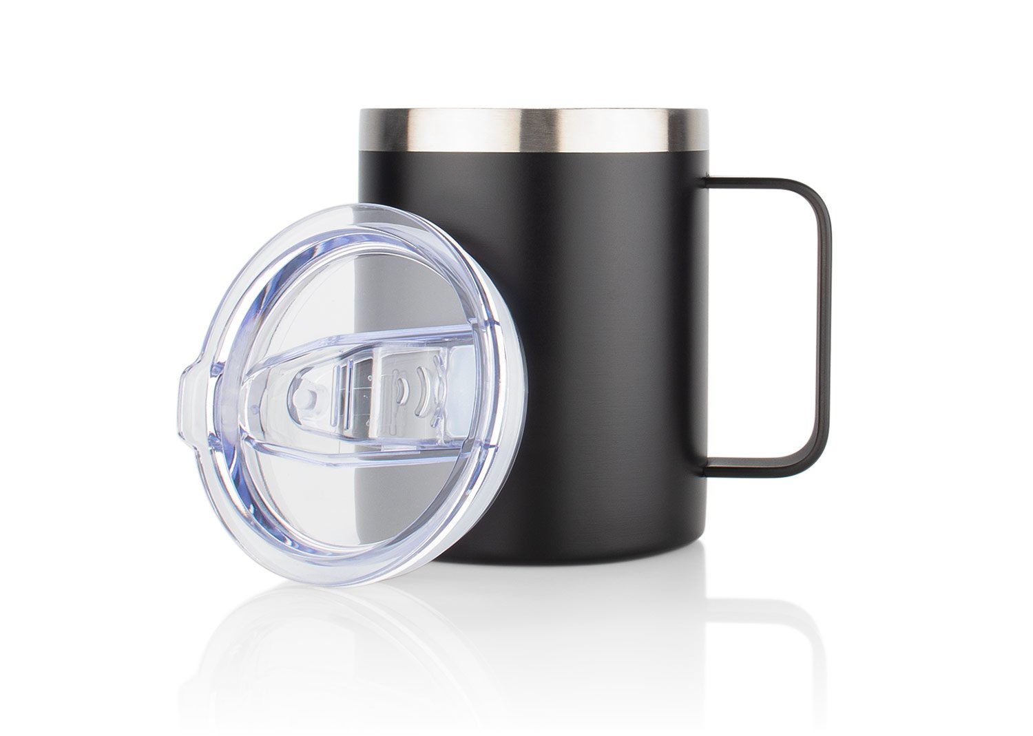 Mug térmico de doble pared con tapa de presión y boquilla con seguro corredizo. Diseñado para conservar la temperatura de tus bebidas, su tapa transparente se ajusta bajo presión y cuenta con un mecanismo de cierre deslizante para mayor seguridad. Capacidad: 380 ml / 13 Oz. Acero inoxidable 201 + Acero inoxidable 304 + AS MEDIDAS: Formato: (Alto X Diámetro): Con Tapa: (12 X Ø 8,6). Sin Tapa: (11 X Ø 8,6). Asa: (12,2). Peso: 170 gr.