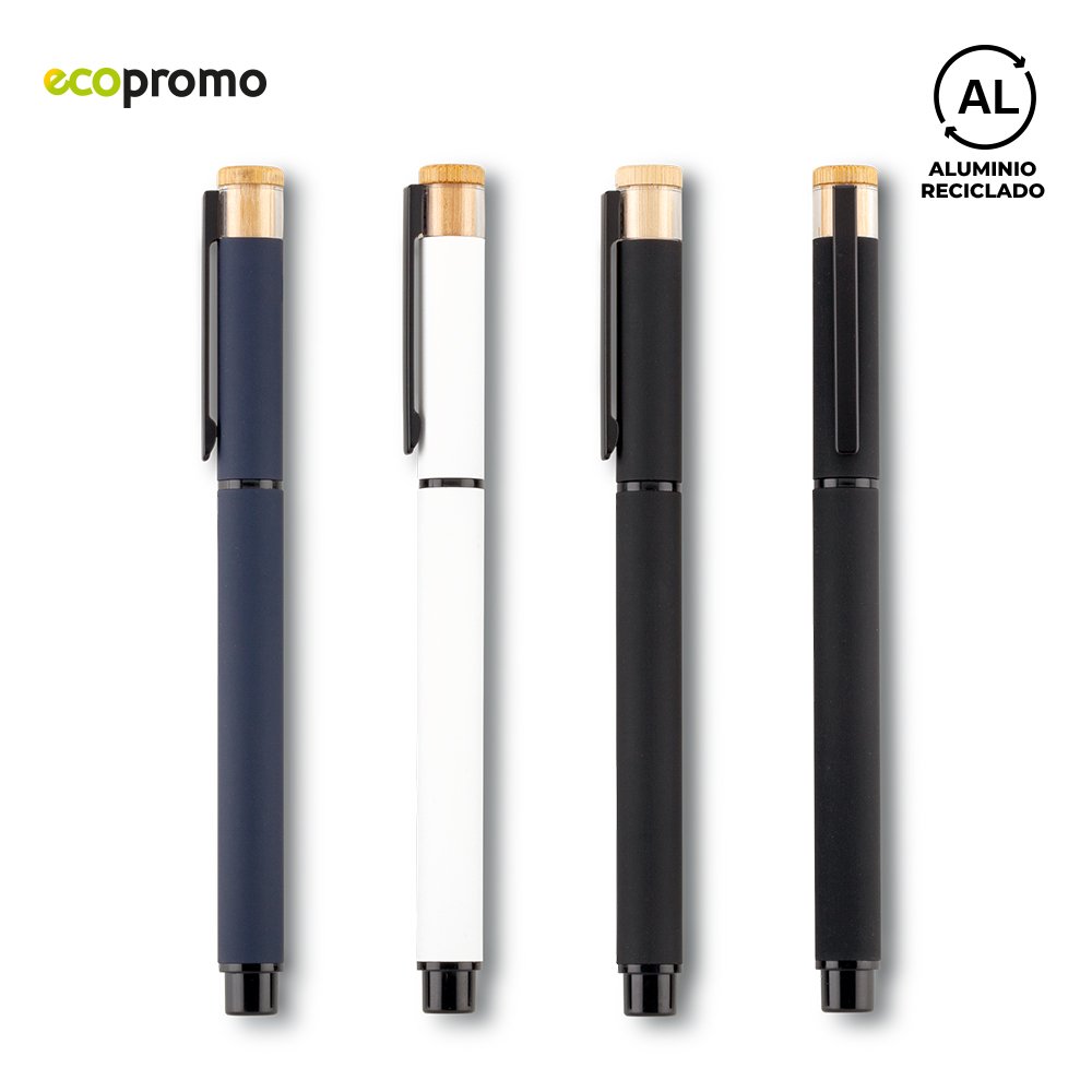 Bolígrafo roller en aluminio reciclado con clip metálico.Medidas: 14 cm.